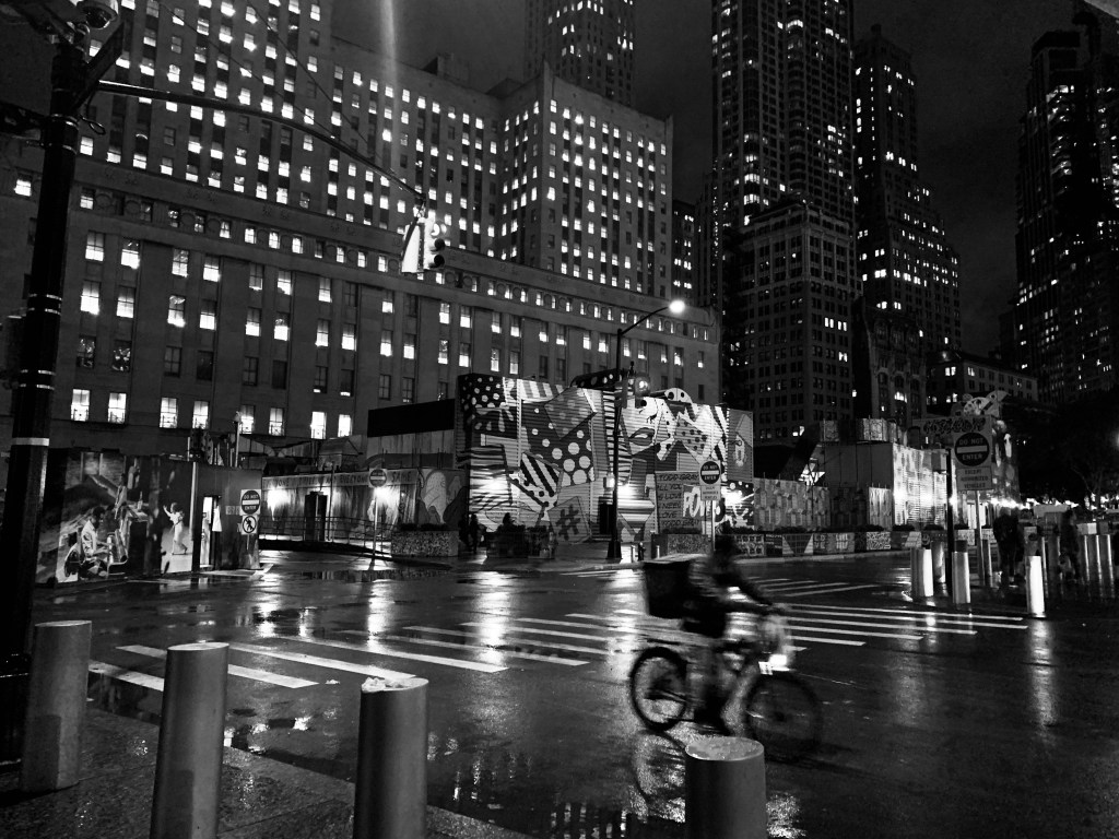 As his stick was continuing its swing-swing-knock near the floor outlets and extension cords that I may’ve never noticed until I noticed someone puzzling over their mushy give and tone when whacked with a stick, a man from across the building who’d been sleeping with his head on the table while his phone charged for the last twenty minutes, jumped up, rushed over and asked the man, “Where do you want to go?” Relieved the man replied, “The restroom.” I hid my shame in voracious bagel chomping. I had it in my power to help someone five feet away, but froze up in the analysis of what it means for the context. Blind people don’t walk down streets unassisted (except en masse on Slide Rd in front of PetSmart for some reason) and into obstacle laden food halls while I’m admiring the tug-to-tear-point ratio of a bagel in my city. Me and the seven other people nearby either justified or ignored our total lack of response to this real-live human’s need. This was probably the turning point for me. Every time after where I noticed a young guy with normal clothes sleeping on the street in broad daylight as people stepped over him I vowed to not look past him. If someone asked me for money I would give it to them or at least look them in the eye to notice their personhood when I told them I didn’t have any. I don’t want it to stop affecting me as it seemingly has everyone else here. I don’t want to walk faster so New Yorkers aren’t annoyed by me, the tourist. I want to drink it all in slowly like it’s the very first time because there’s nothing like this anywhere else, don’t they get that?